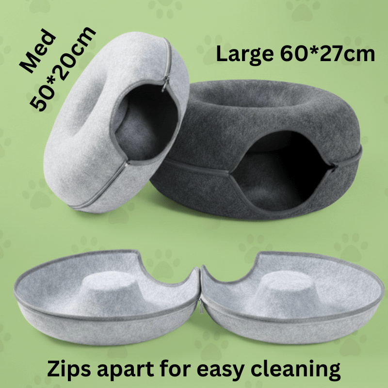 Our Catnap Cave blends the softness of a plush bed with the excitement of a play tunnel, offering a cosy retreat that also stimulates your cat’s curiosity and playfulness. It’s the ideal all-in-one spot for napping, relaxing, and having fun!